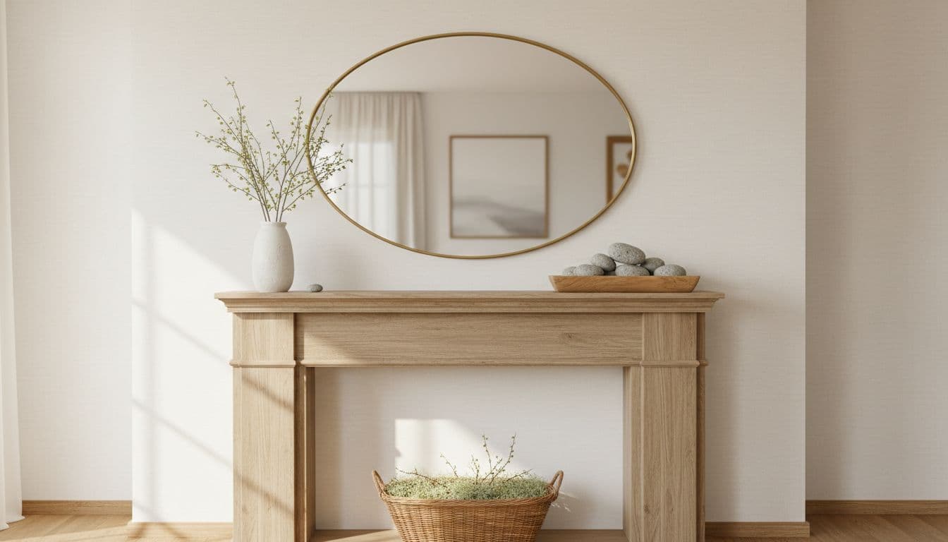 Pick one anchor and commit to it. A mirror, framed art, or even a simple “branch moment” (a tall, sculptural branch shape) gives your eyes a place to land. Without that anchor, smaller objects start competing, and the mantel turns into a clutter zone fast.